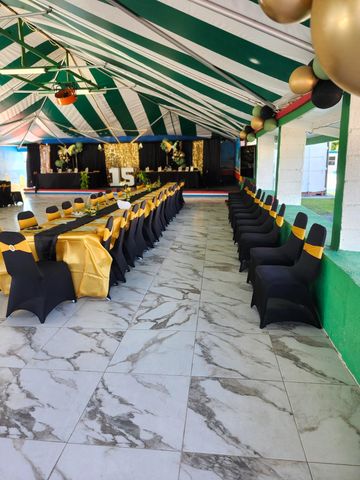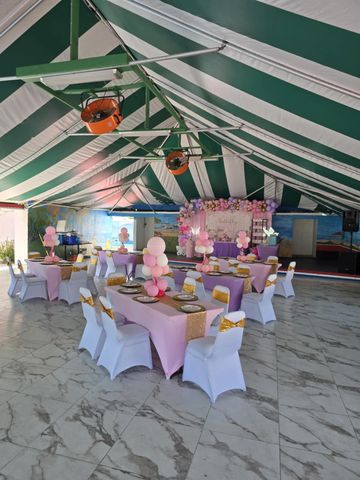 Our large venue, a 2,400-square-foot tent, is the perfect setting for unforgettable birthday parties, wedding receptions, corporate parties or Repass. How about a church or school event, even a dinner and dance or any type of celebration you can dream up. With it's backstage room, we can hold your event.